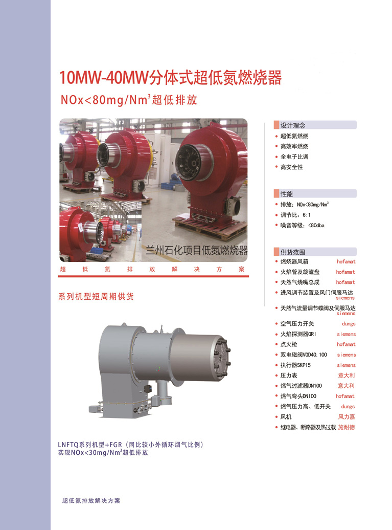 10MW-40MW分体式超低氮燃烧器<80mg/Nm3超低排放