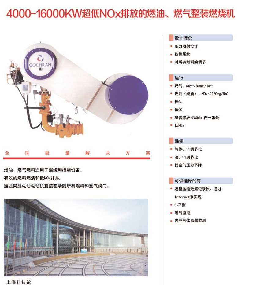4000-16000KW超低NOx排放的燃油、燃气整装燃烧机(NOx<80mg/Nm3)